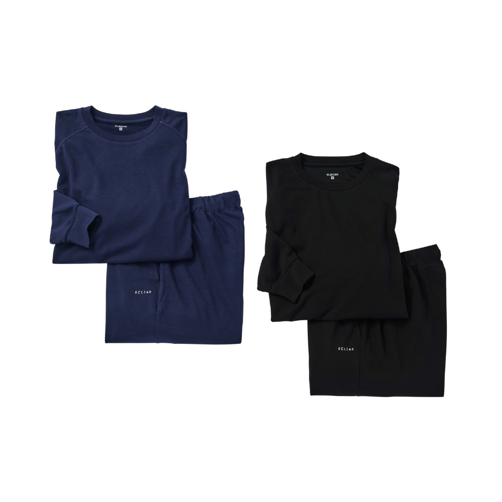 ユニセックス リカバリーウェア 上下セット[長袖・ロングパンツ] 一般医療機器 血行促進 疲労回復 遠赤外線効果 ルームウェア パジャマ Mサイズ ECLEAR ネイビー