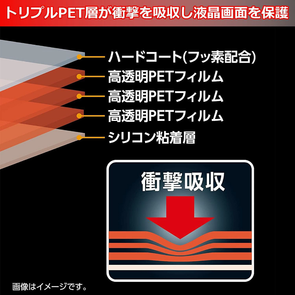 トリプルPET層が衝撃や傷から液晶画面を守ります。