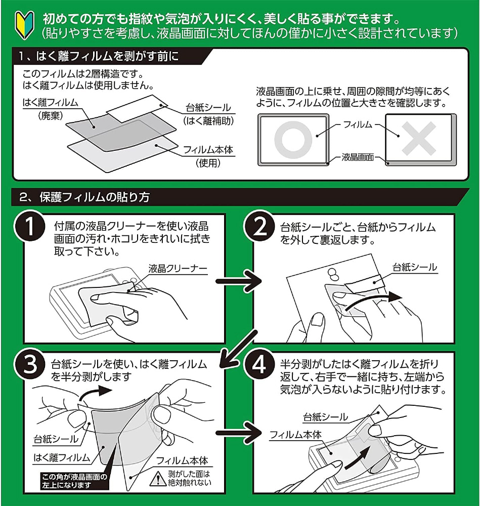 ※貼りやすさを考慮し、液晶画面に対してほんの僅かに小さく設計されています。