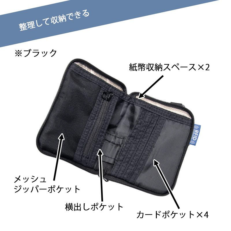 [仕様] 紙幣収納スペース x 2 / コイン用ポケット x 2 / 切符ホルダー