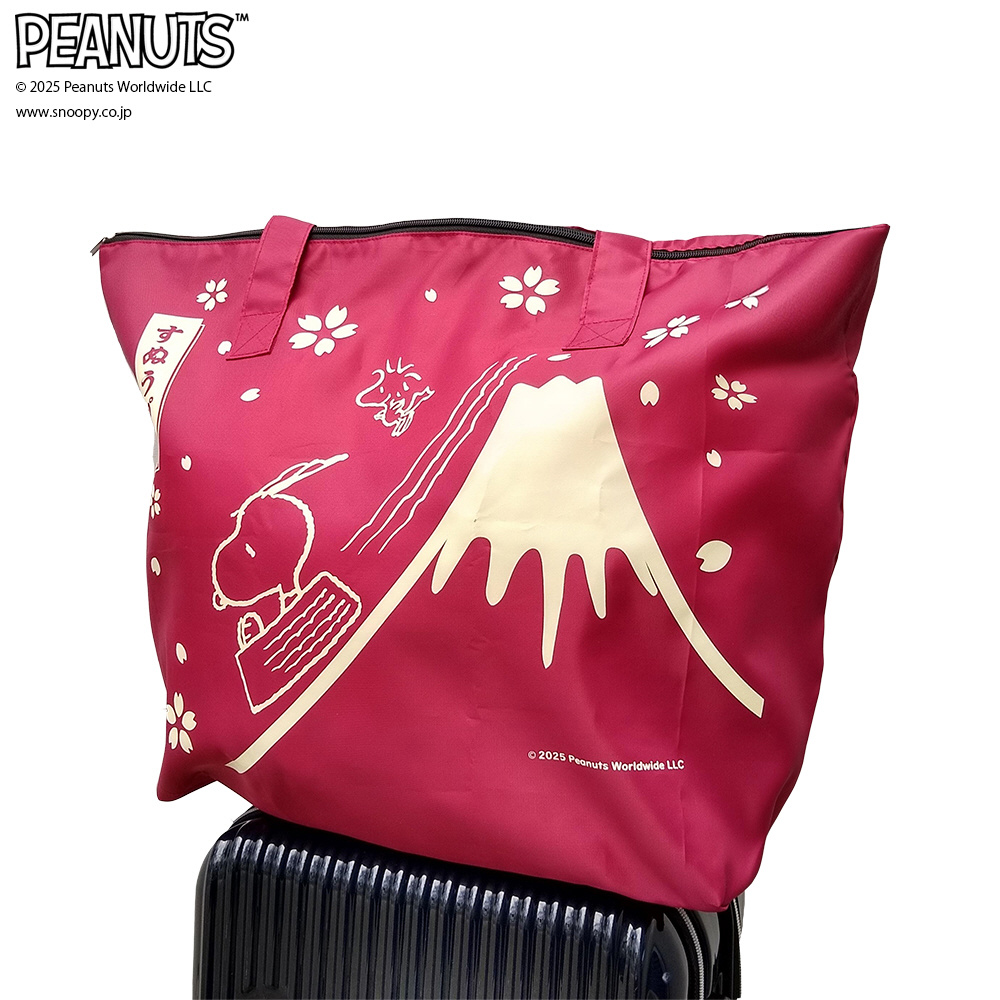 大型折りたたみファスナートート Lサイズ 大容量 スヌーピー レッド (富士山) AD365