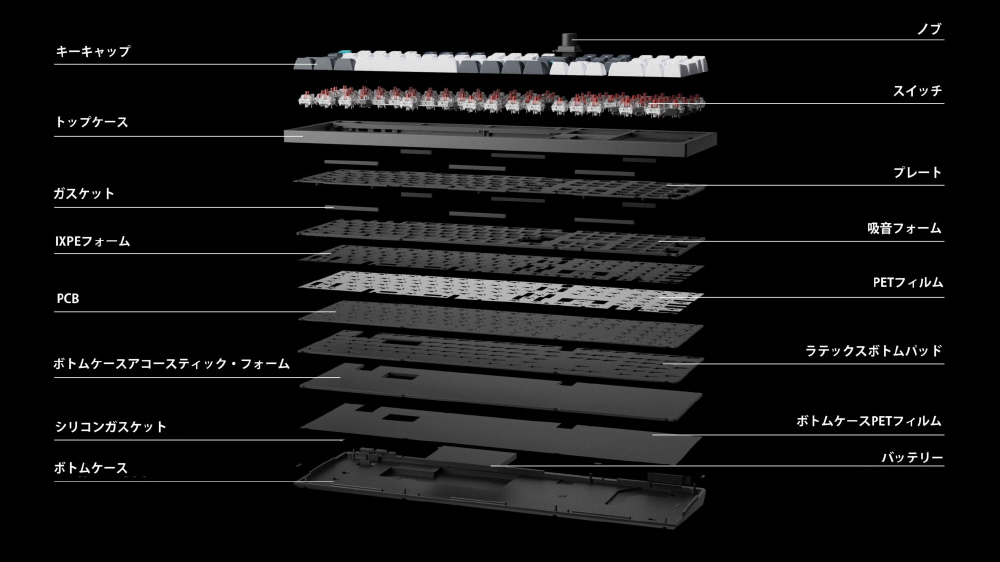 IXPE、PET、ラテックスなどのプレミアムアコースティックフォームの組み合わせによりタイピングエクスペリエンスを向上させます。キーを打つたびに楽しくなり、タップするたびに五感が高まります。また、各コンポーネントが簡単に組み立てられるように設計されているため、各コンポーネントを簡単にカスタマイズして調整し、究極のタイピングエクスペリエンスを実現することができます。