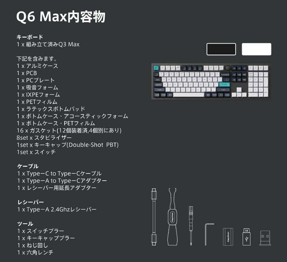「Q6 Max QMK/VIA ワイヤレス カスタム・メカニカルキーボード - RGB - JIS配列(テンキー付 / 100%フルサイズ)- カーボンブラック / Gateron Jupiter スイッチ(ホットスワップ)赤軸」