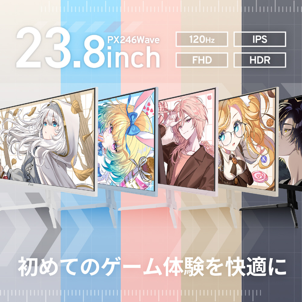 PX246WAVEは、理想のゲーム部屋のコーディネートができるカラーが特徴のゲーミング24インチモニターです。