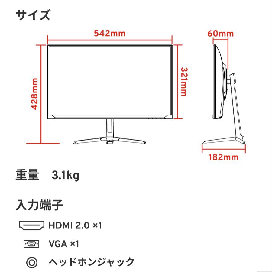 本体サイズ スタンド有り:W 542xH 428xD 182mm