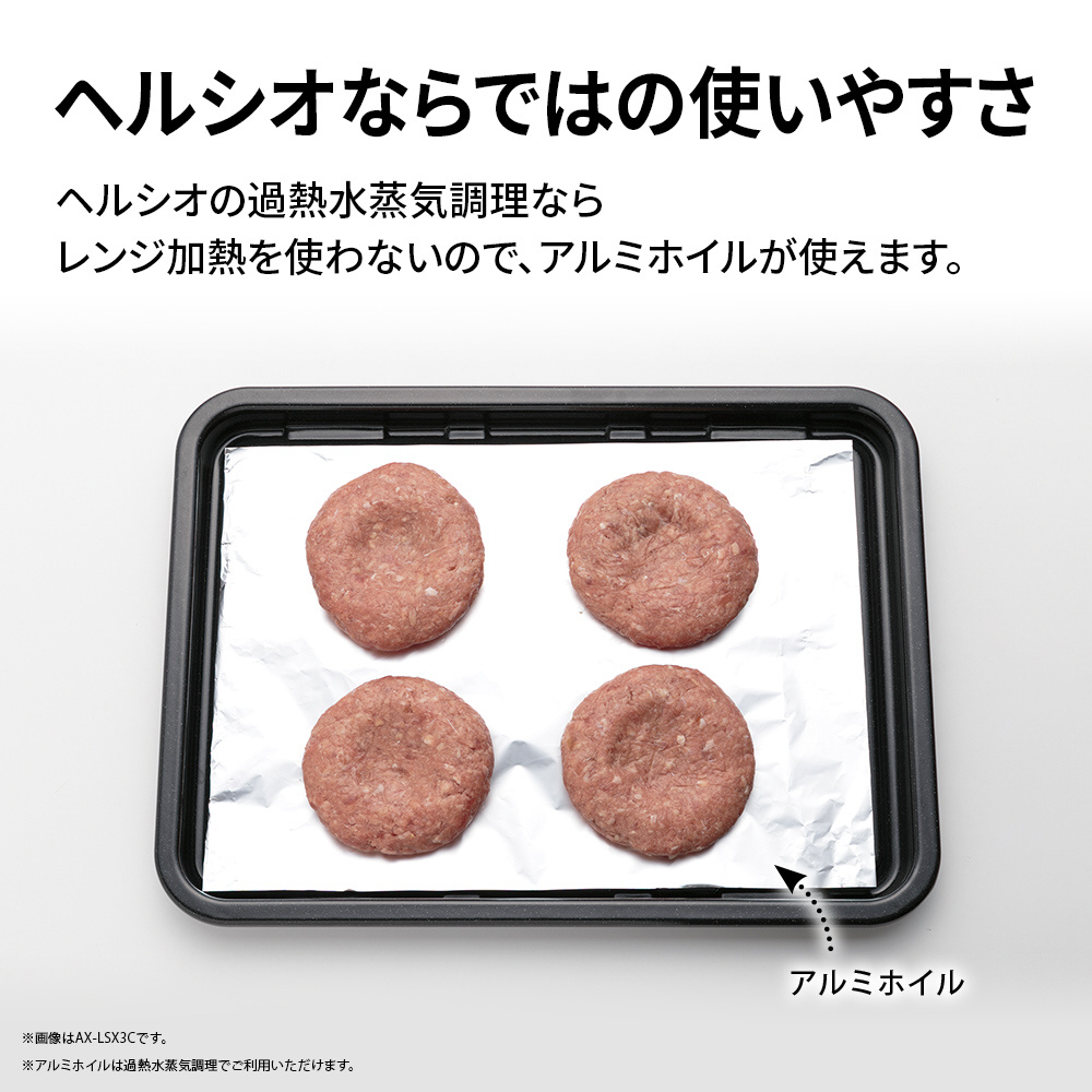 レンジ加熱を使わないので、ウォーターオーブン・グリルの焼き物調理にはアルミホイルが使え、調理後の後片付けが簡単。