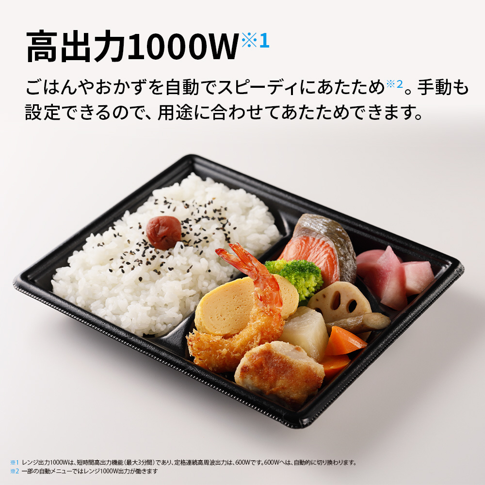 ※2 一部の自動メニューではレンジ1000W出力が働きます