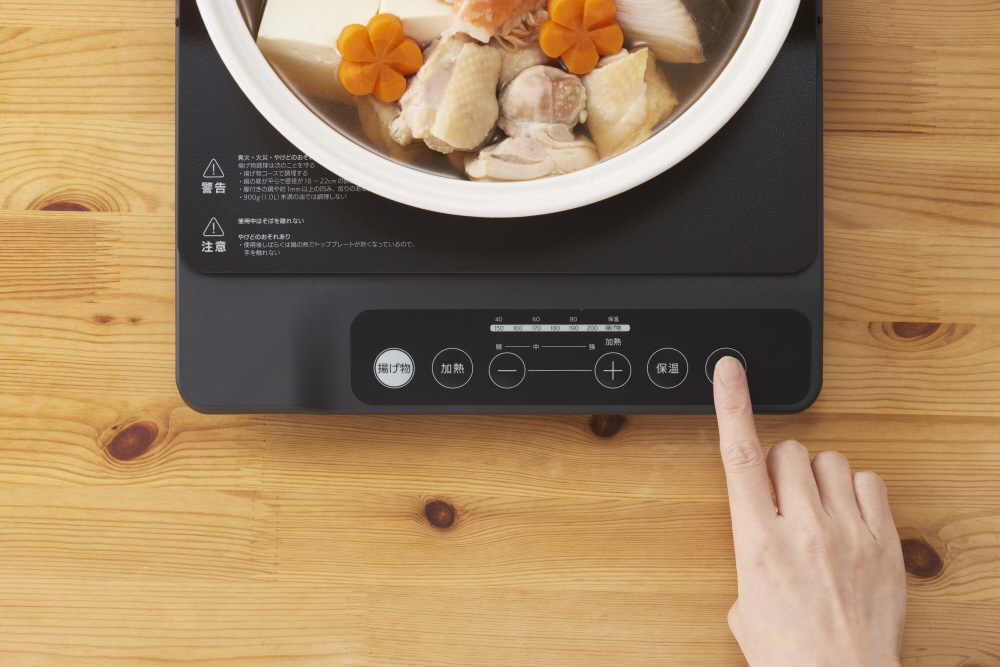 鍋を外すと過熱をやめ、電子音でお知らせし、約1分後に運転が停止します。