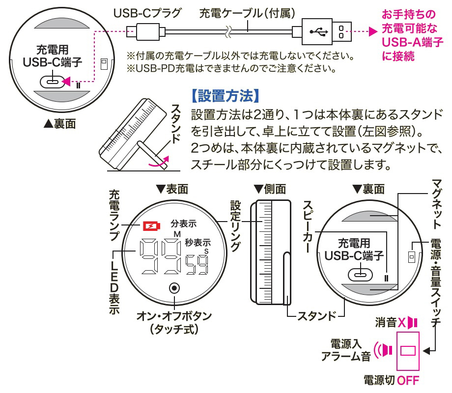 ダイヤルタイマー充電式ブラック 分2桁表示