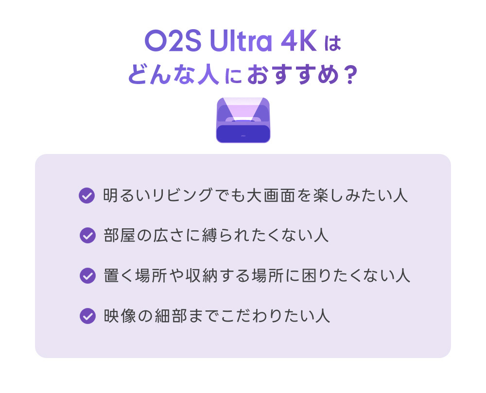 Google TV 5.0搭載 3色レーザー超短焦点4Kプロジェクター O2S Ultra 4K
