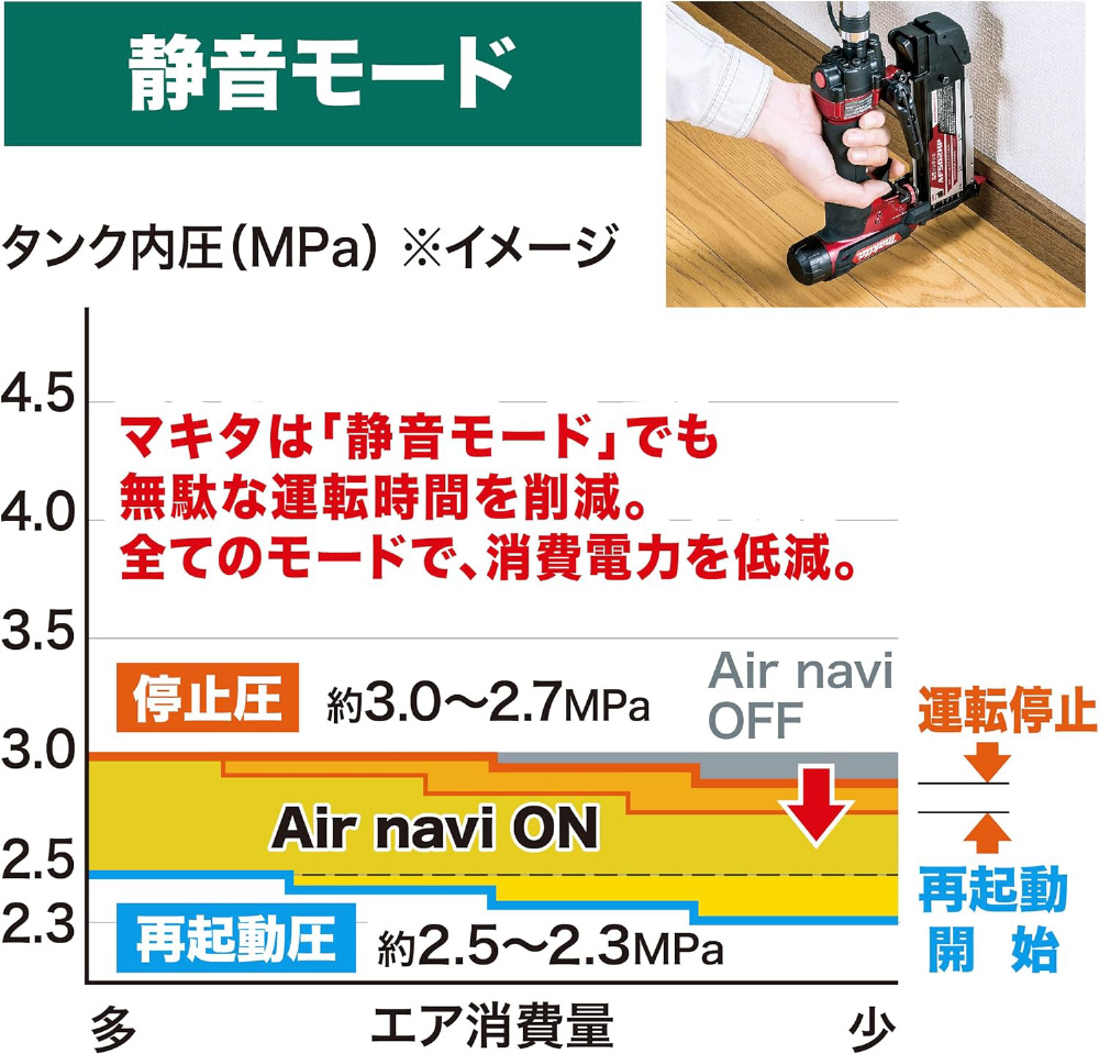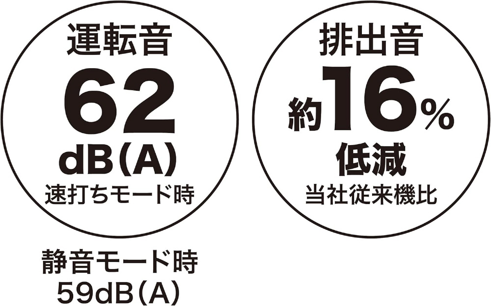 「高耐久&仕事中の低騒音化」を実現。 さらに消費電力も低減でき、ブレーカ落ちを軽減。