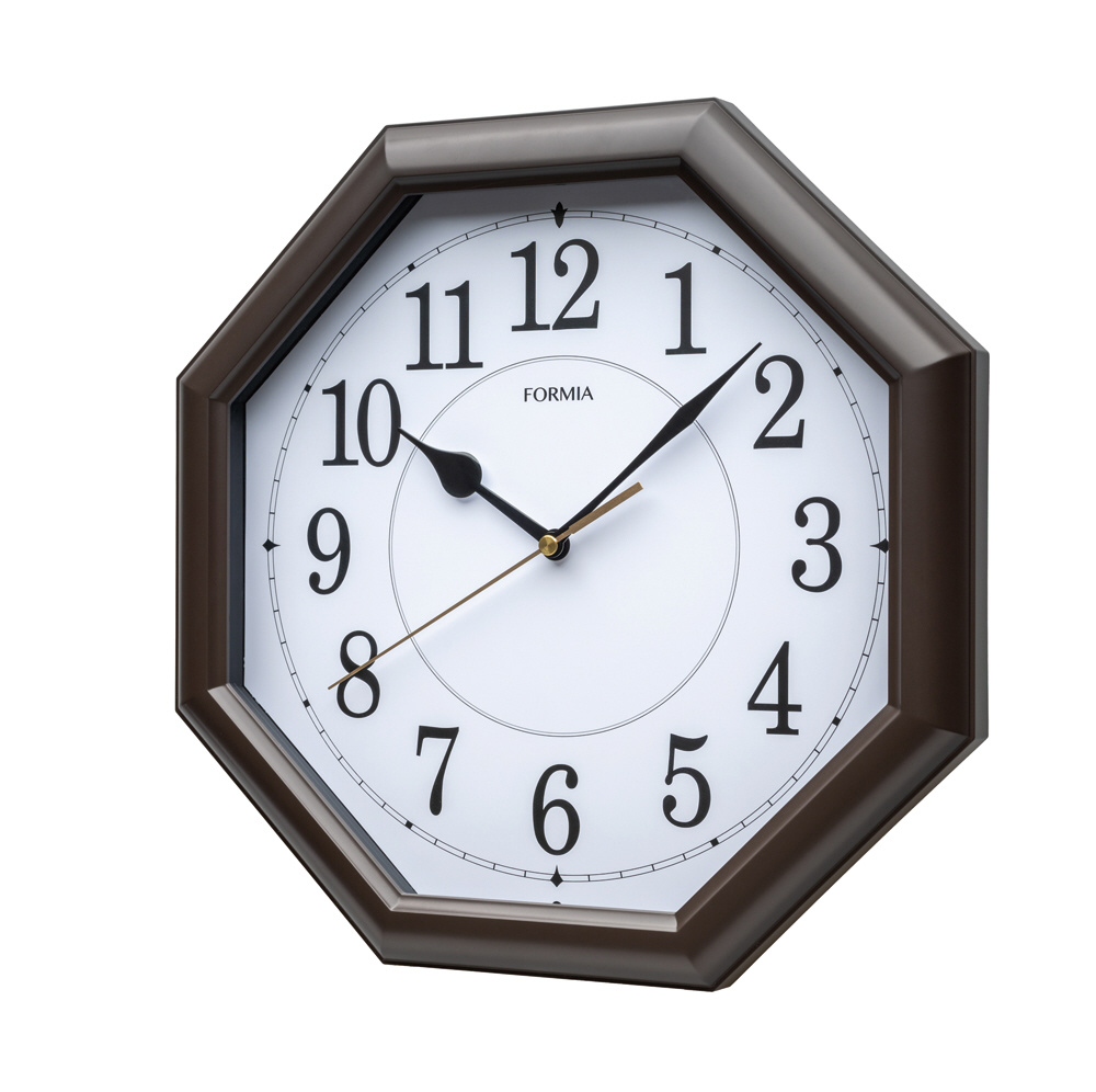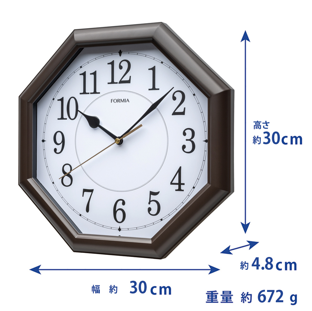 八角形 連続秒針 掛け時計 ブラウン HWC-019W-BR