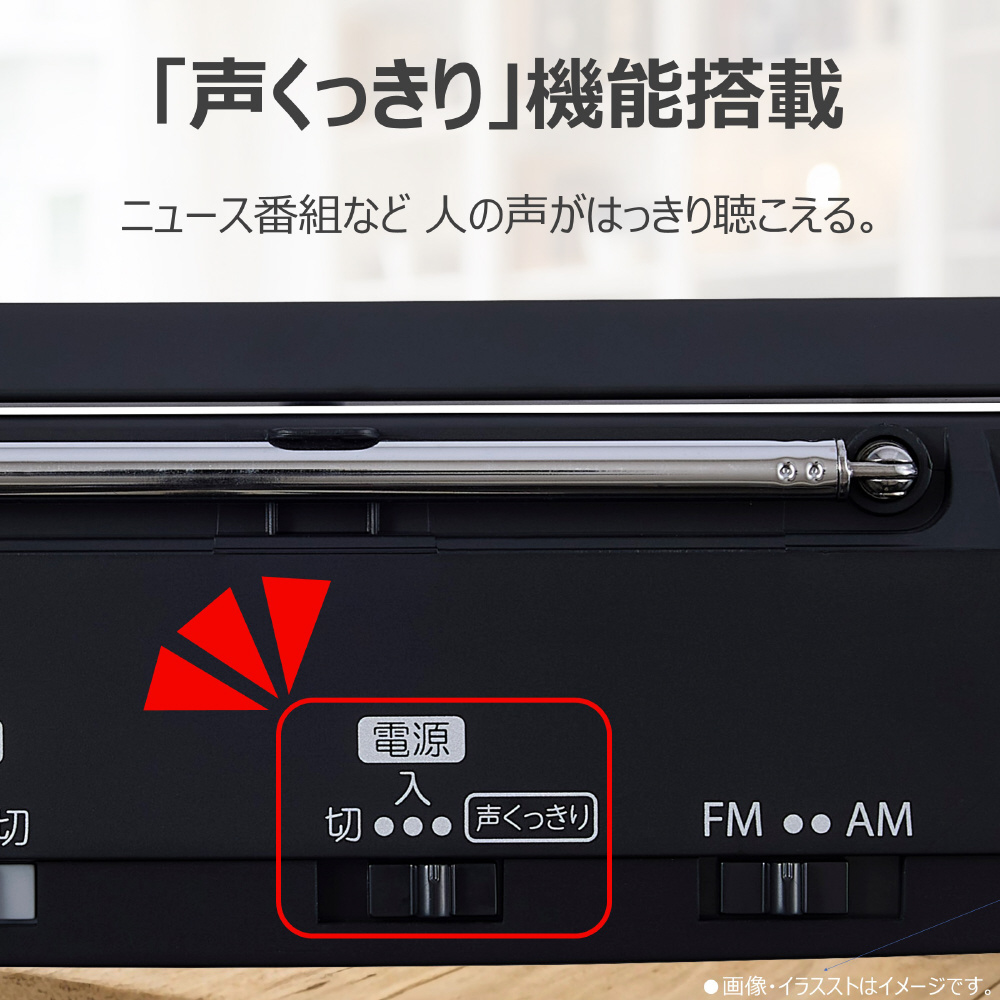 音声が聴き取りやすいホームラジオ、電池長持ち450時間。