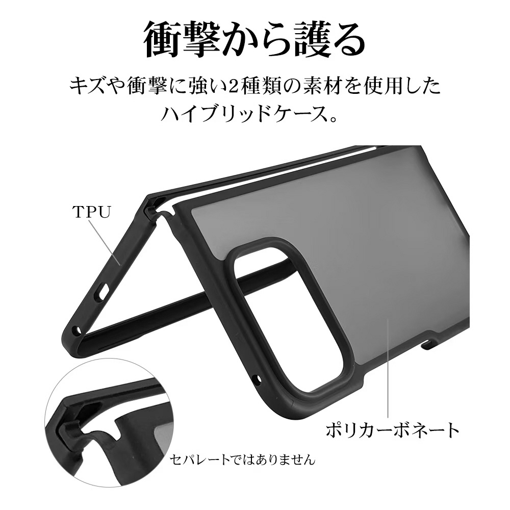 本製品はTPU素材とポリカーボネート素材を使用したハイブリッドケースです。