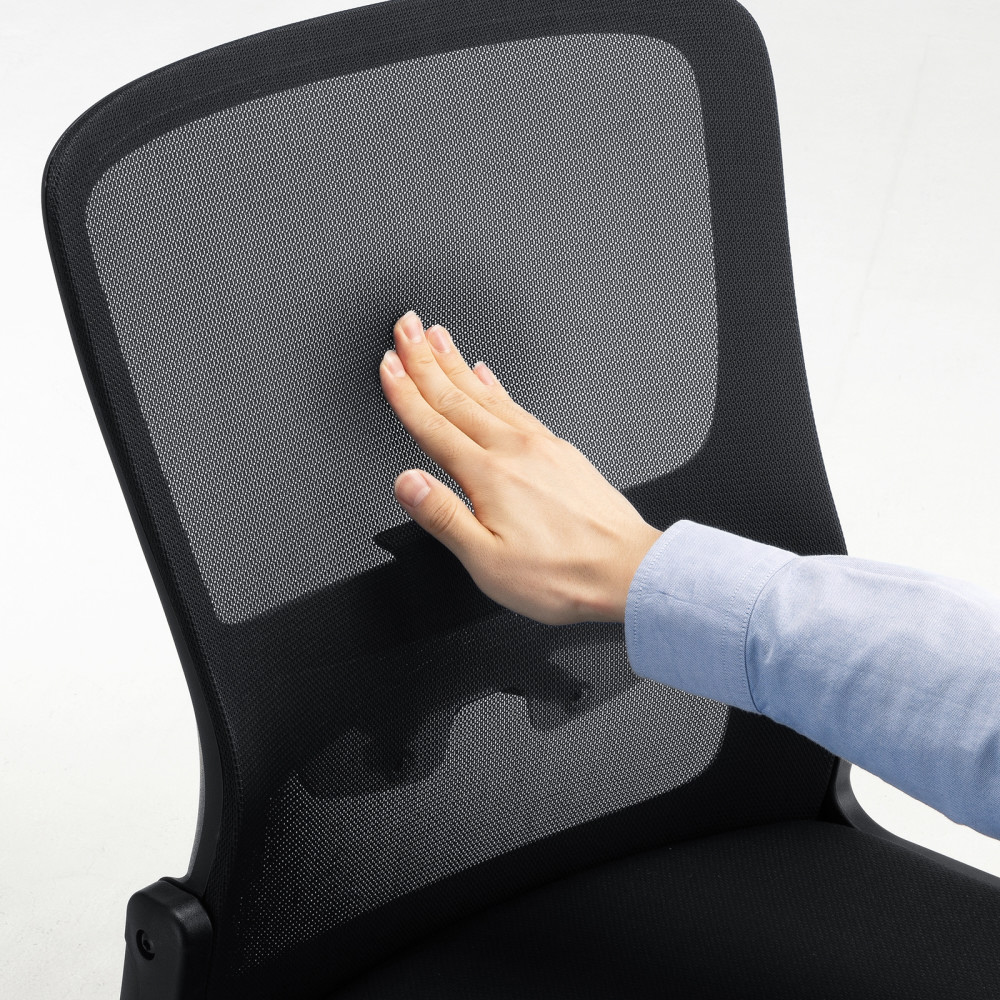 メッシュチェア [W570xD570xH925〜1000mm] 肘なし・座部 布張り ランバーサポート 高さ調節 通気性 スタンダード オフィスチェア 腰サポート レバー式昇降 ブラック SNC-NET27BK