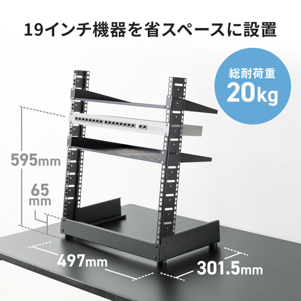 [総耐荷重]20kg ※重量物は下部に搭載してください。