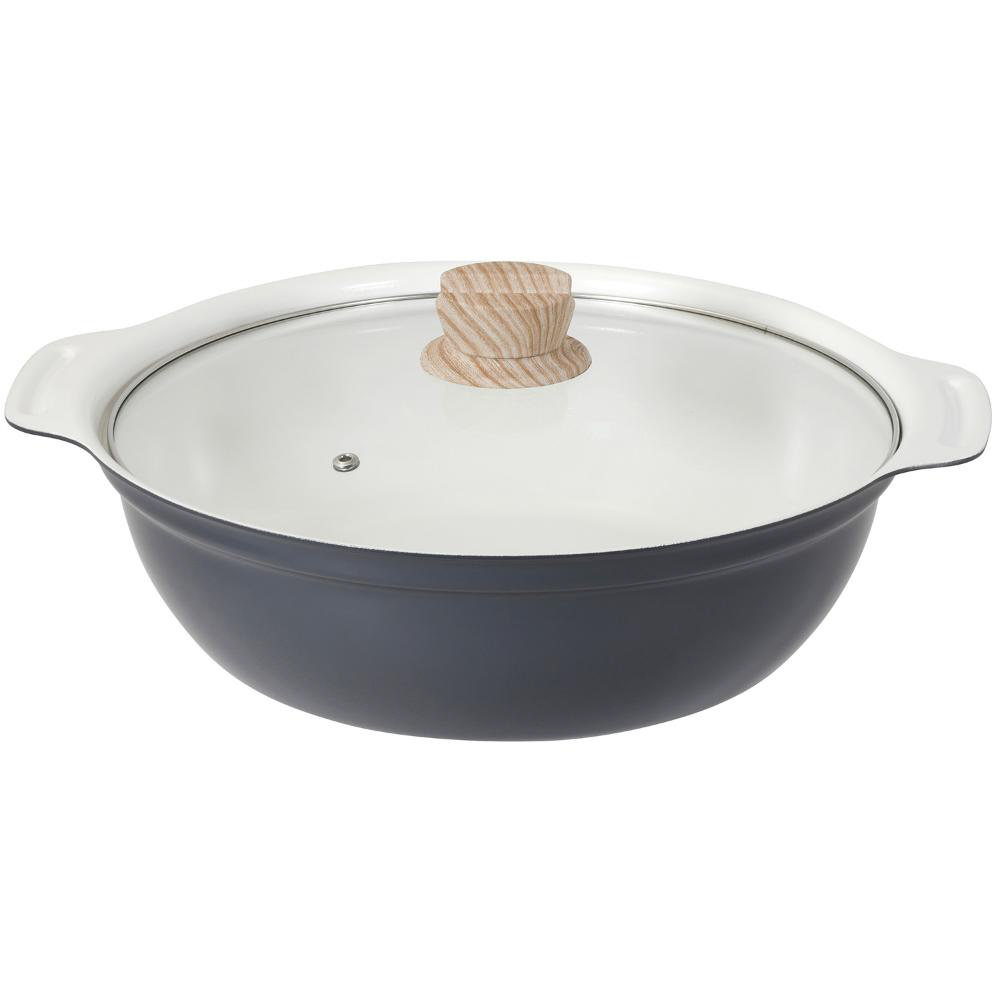 卓上鍋 両手鍋 28cm IH ガス火対応 ガラス蓋付 セラミック ビストロ・セラミック グレー NQ-0415 [IH対応]