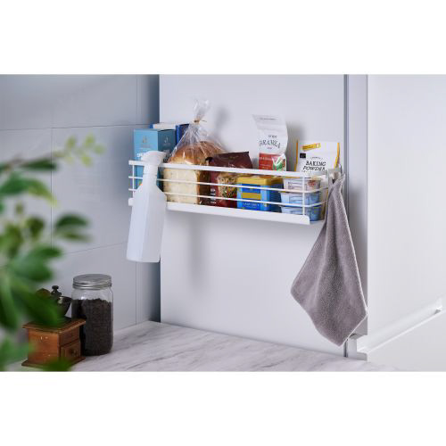 調味料ラック マグネット スパイスラック バスケット型 フック付き < キッチン 冷蔵庫 壁面 浮かせる収納 > side ホワイト