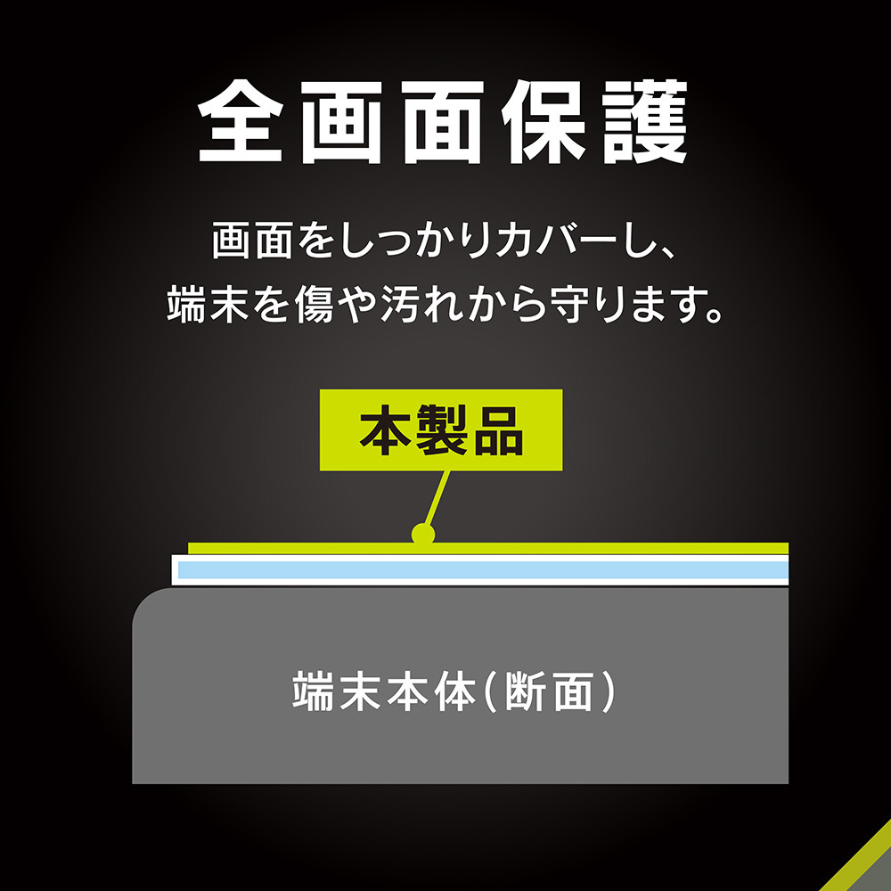画面を傷や汚れからしっかりと守る、指紋が付きにくい保護フィルムです。