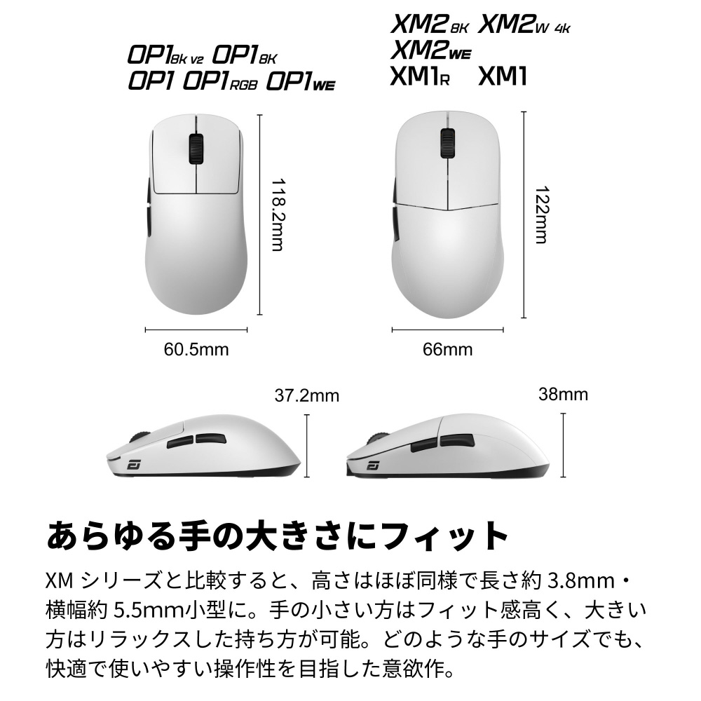 XMシリーズと比較すると、高さはほぼ同様で長さ約3.8mm・横幅約5.5mm小型に。