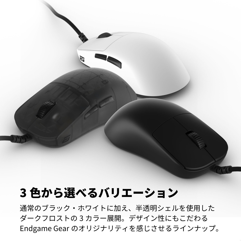 Endgame Gear専用にカスタムした新センサー、PAW3950 U+1F95Aを搭載。CPIやトラッキング速度などスペック面での向上に加え、リフトオフディスタンスは0.7〜1.7mm内で0.1ミリ単位で選択、CPIは10000までなら10刻みで調整可能に。