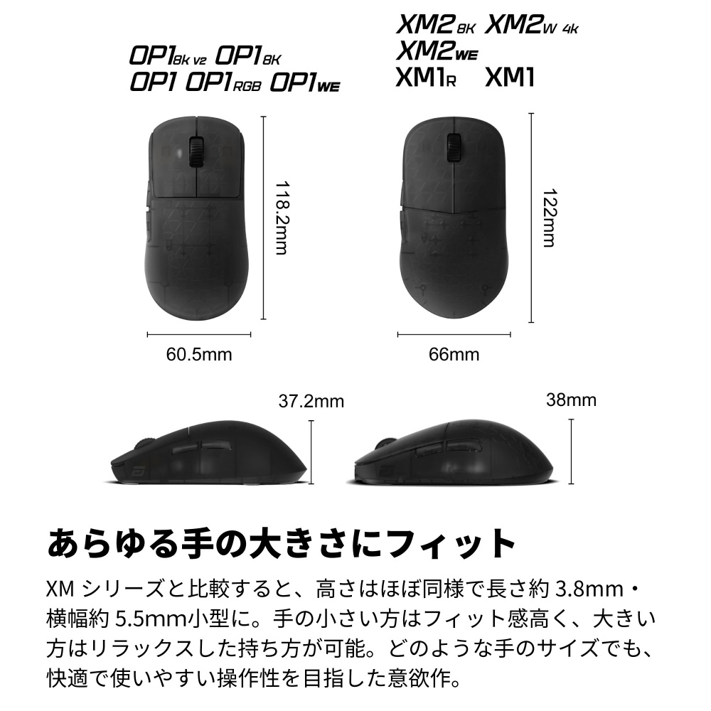 XMシリーズと比較すると、高さはほぼ同様で長さ約3.8mm・横幅約5.5mm小型に。