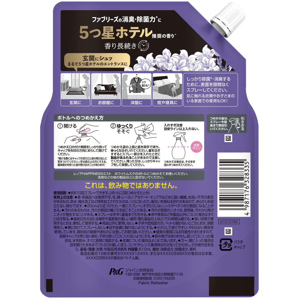 レノアハピネスミスト ホワイトムスクの香り 詰替特大サイズ 610ml