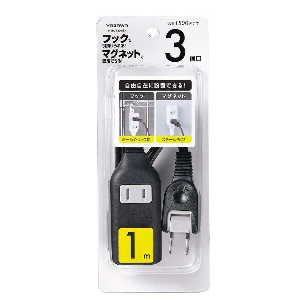 裏面フックマグネット付タップ3個口1m 黒 H4HJS301BK 360度回転フック付き [1.0m /3個口 /スイッチ無]