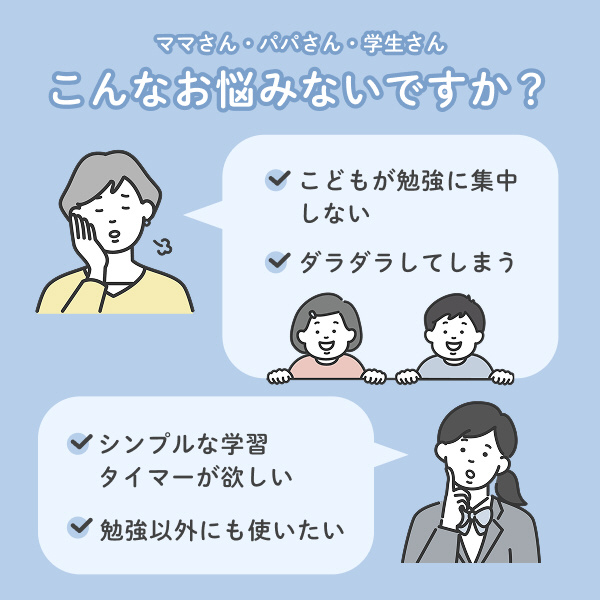 直感的に使える設計なので、お子さまの勉強タイマーとしても最適です。