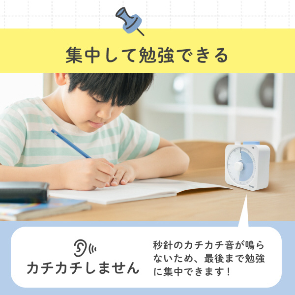 動作中はカチカチ音が鳴らない静音仕様。勉強や仕事など、集中したい時間にぴったりです。