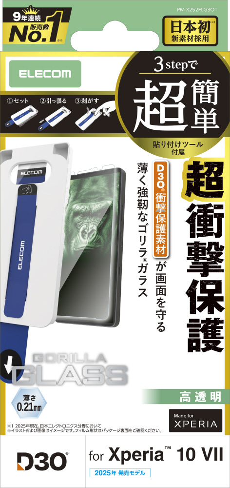 Xperia 10 VII (SO-52F)/ガラスフィルム/D3O/ゴリラ/超簡単貼り付けツール