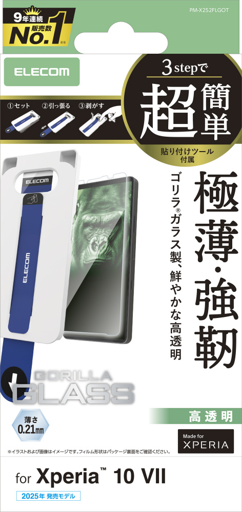 Xperia 10 VII (SO-52F)/ガラスフィルム/ゴリラ/0.21mm/超簡単貼り付けツール