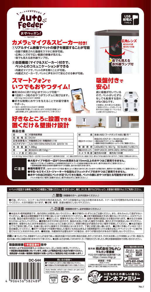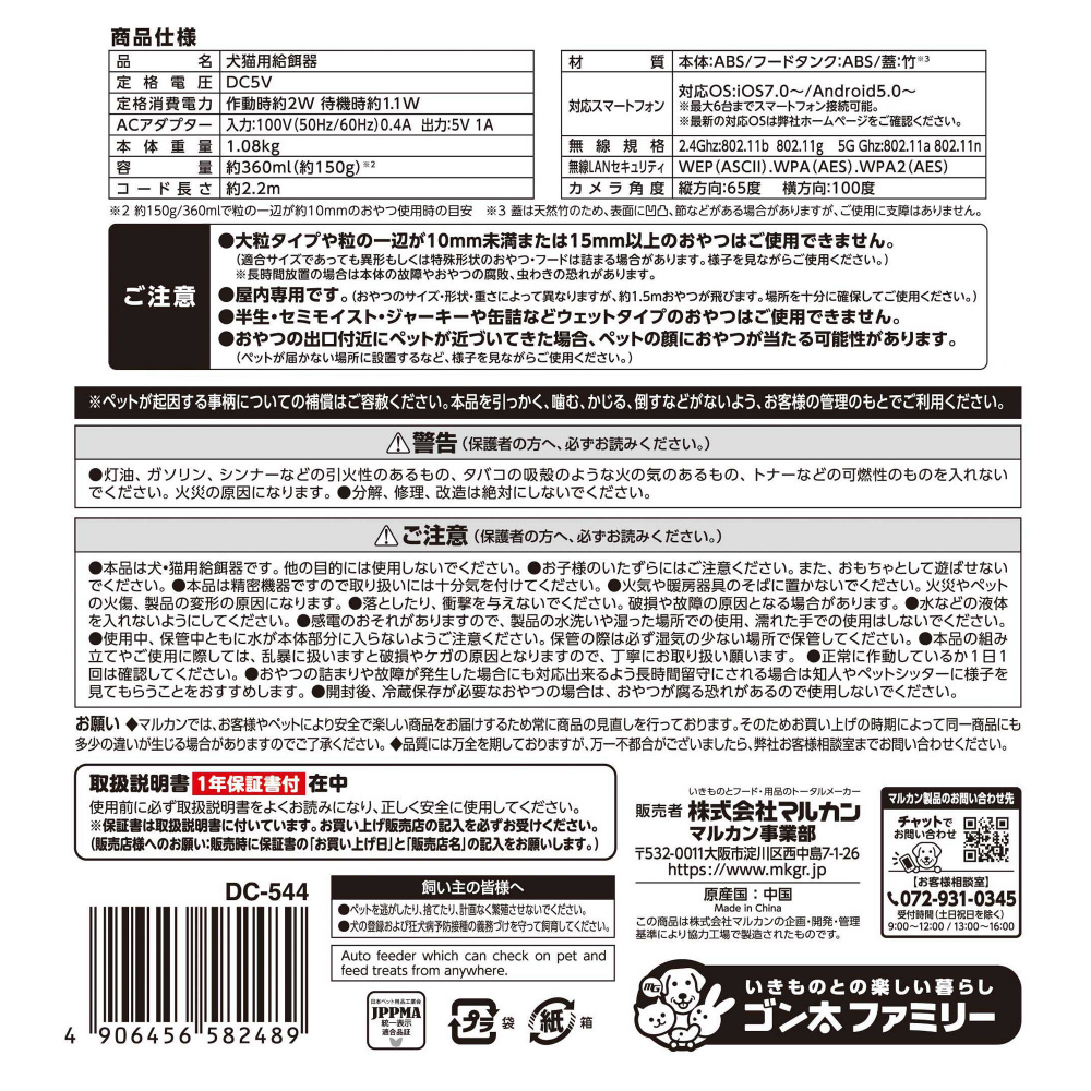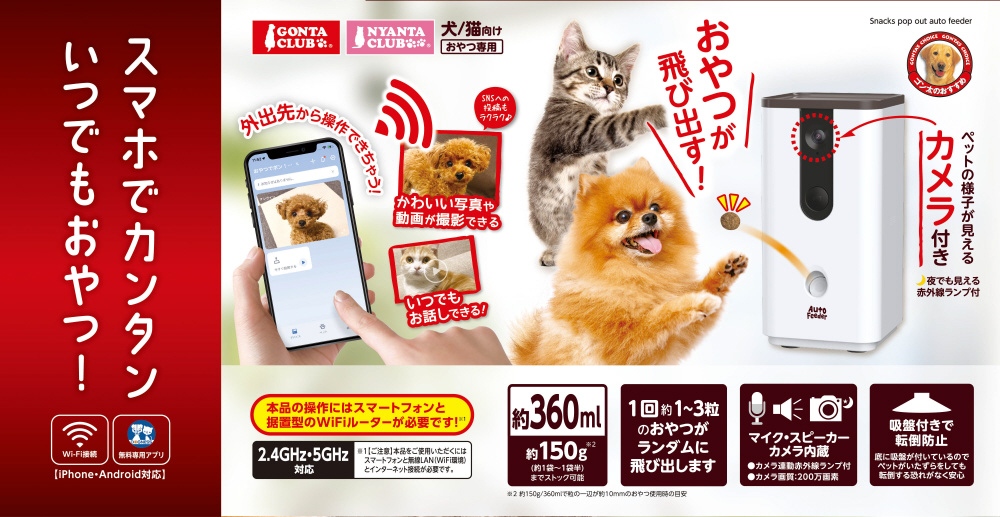 ・外出先からスマートフォンで好きな時間におやつを与えることでお留守番をサポート