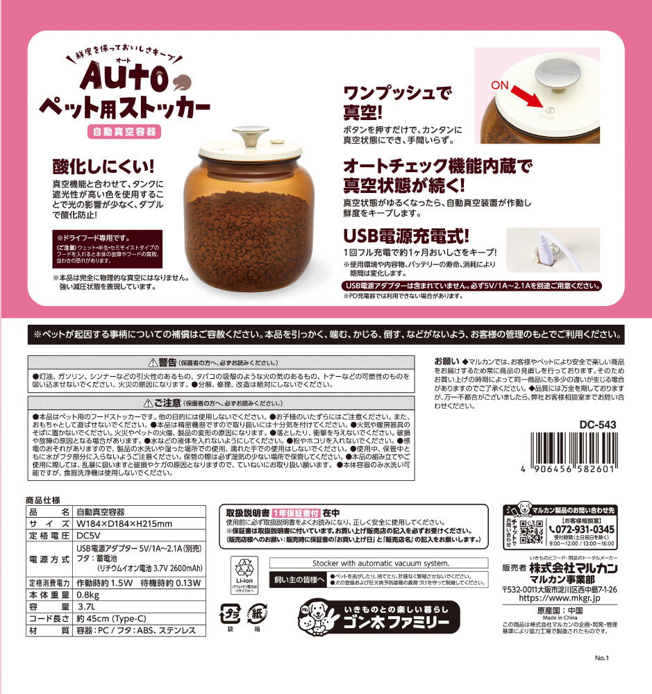 ・USB電源充電式。1回フル充電で約1ヶ月おいしさキープ