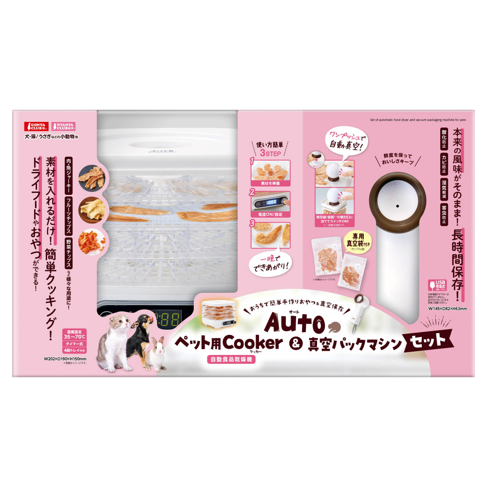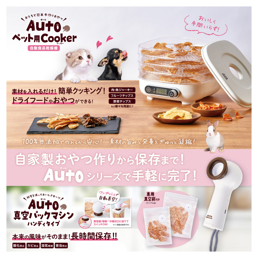 ペット用自動食品乾燥機とペット用真空パックマシンのセット品です。(真空パックマシンの充電用USB電源アダプターは含まれていません。5V1A〜2.1Aを別途ご用意ください。)
