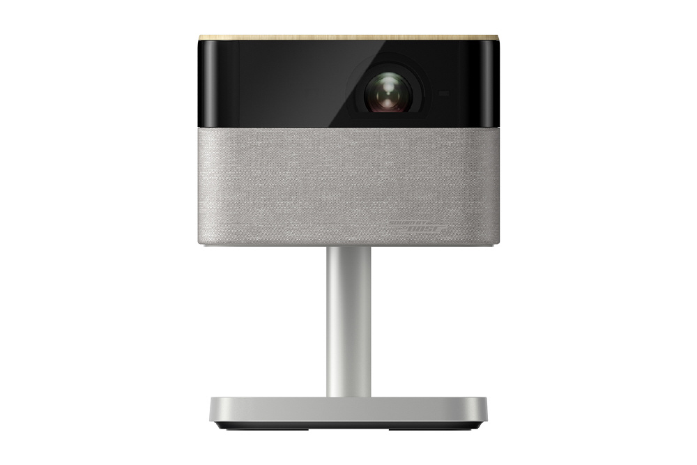 インテリアになじむ洗練されたデザイン。アンビエントライトを搭載し、お部屋をおしゃれに演出。フット付だから角度調整や天井投写が可能で、さらにオプションのフロアスタンドと組み合わせて設置場所を選ばず快適に映像を楽しめる。