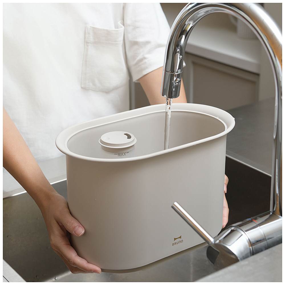 ■ハイブリッド式ながら、お手入れしやすい形状の加湿器。 排水や拭き上げがしやすく、清潔を保ちやすい設計です。