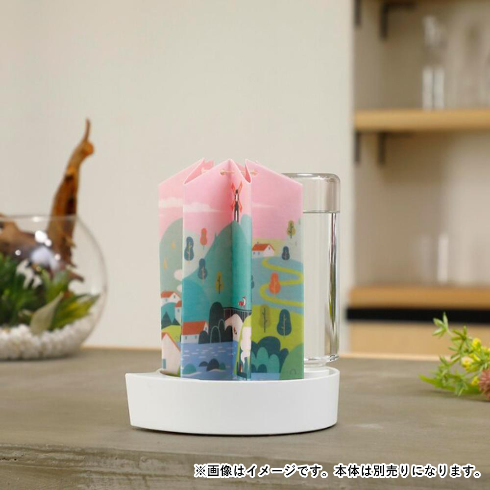 加湿器用に開発された紙素材を採用しており、加湿能力はコップ約10杯分。