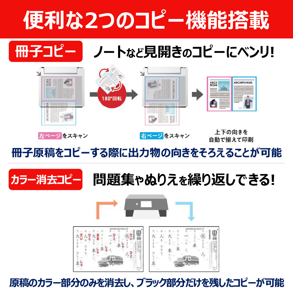写真も文字もくっきり「5色ハイブリッドインク」スマホからの多彩なプリントが楽しめる「おうちでスマホプリ」コピー操作がワンタッチで可能「1プッシュコピー」