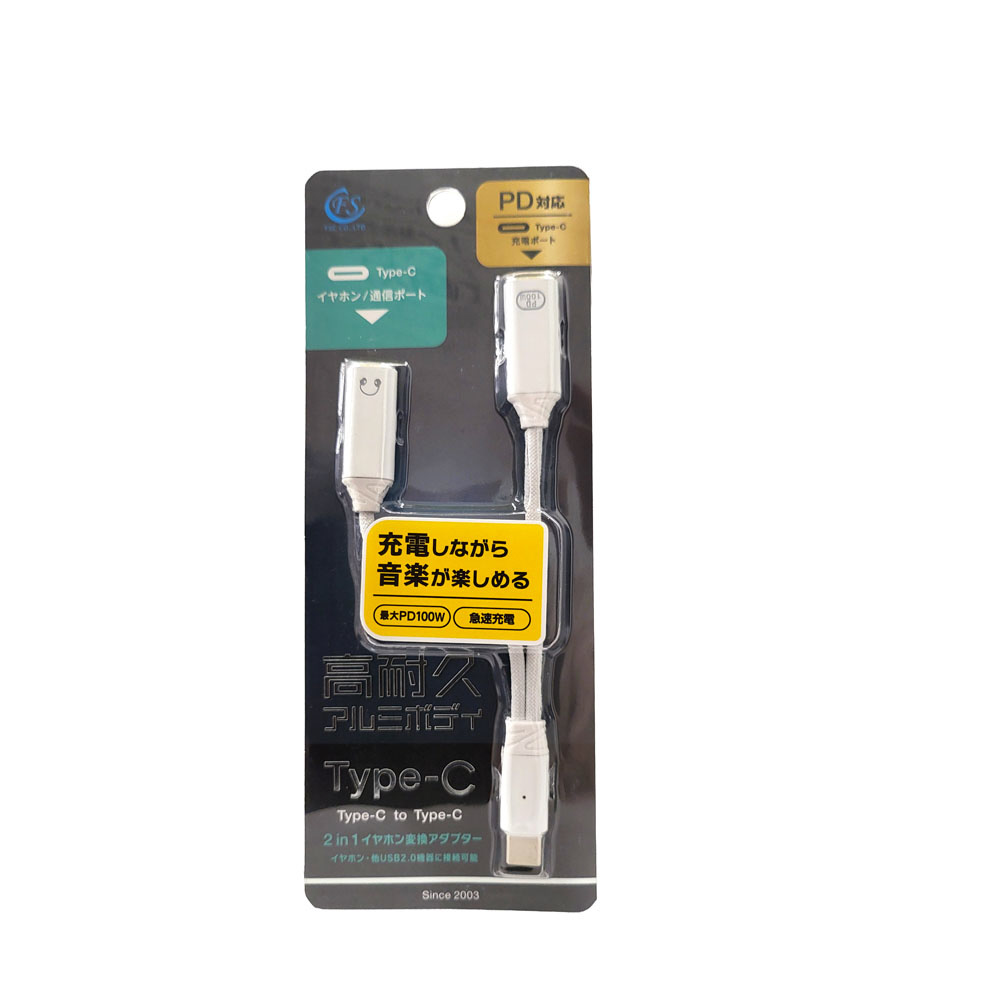 2in1 Type-Cイヤホン変換アダブター ホワイト FS-CCDACPD-WH