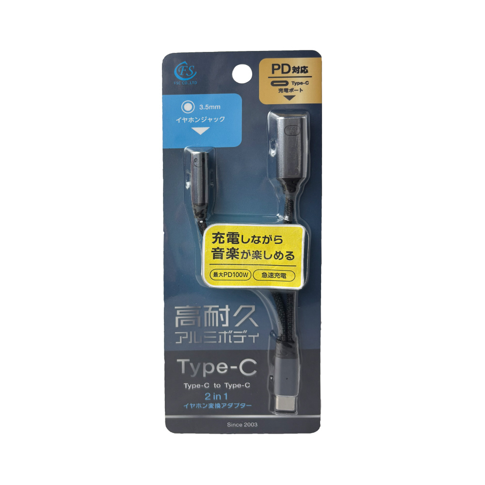 2in1 3.5mmイヤホン変換アダブター グレー FS-C35DACPD-GY
