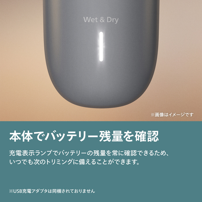 充電表示ランプでバッテリーの残量や充電中の状態を確認できるため、いつでも次のトリミングに備えることができます。