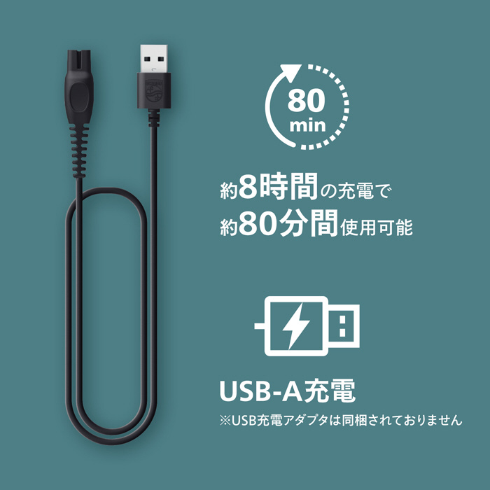 付属品 取扱説明書、充電ケーブル、コーム (2 mm)、コーム (3 mm)、クリーニングブラシ