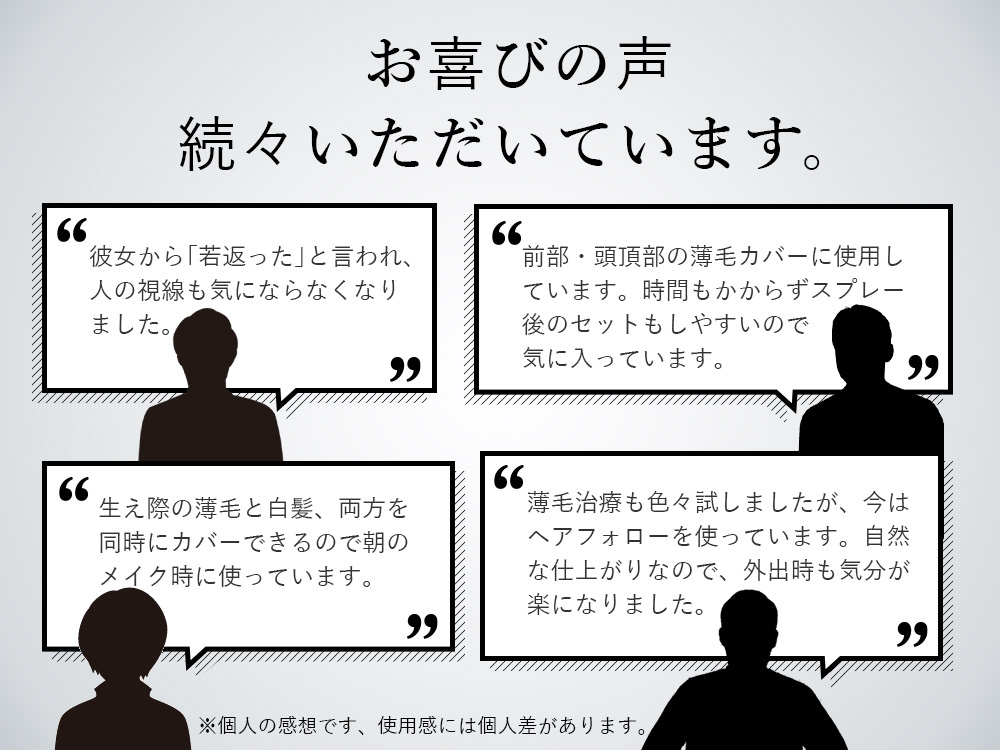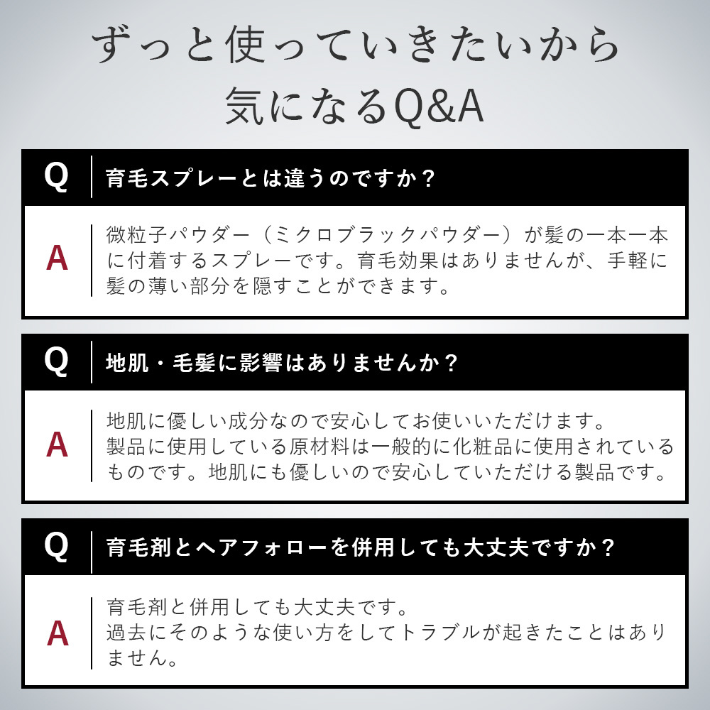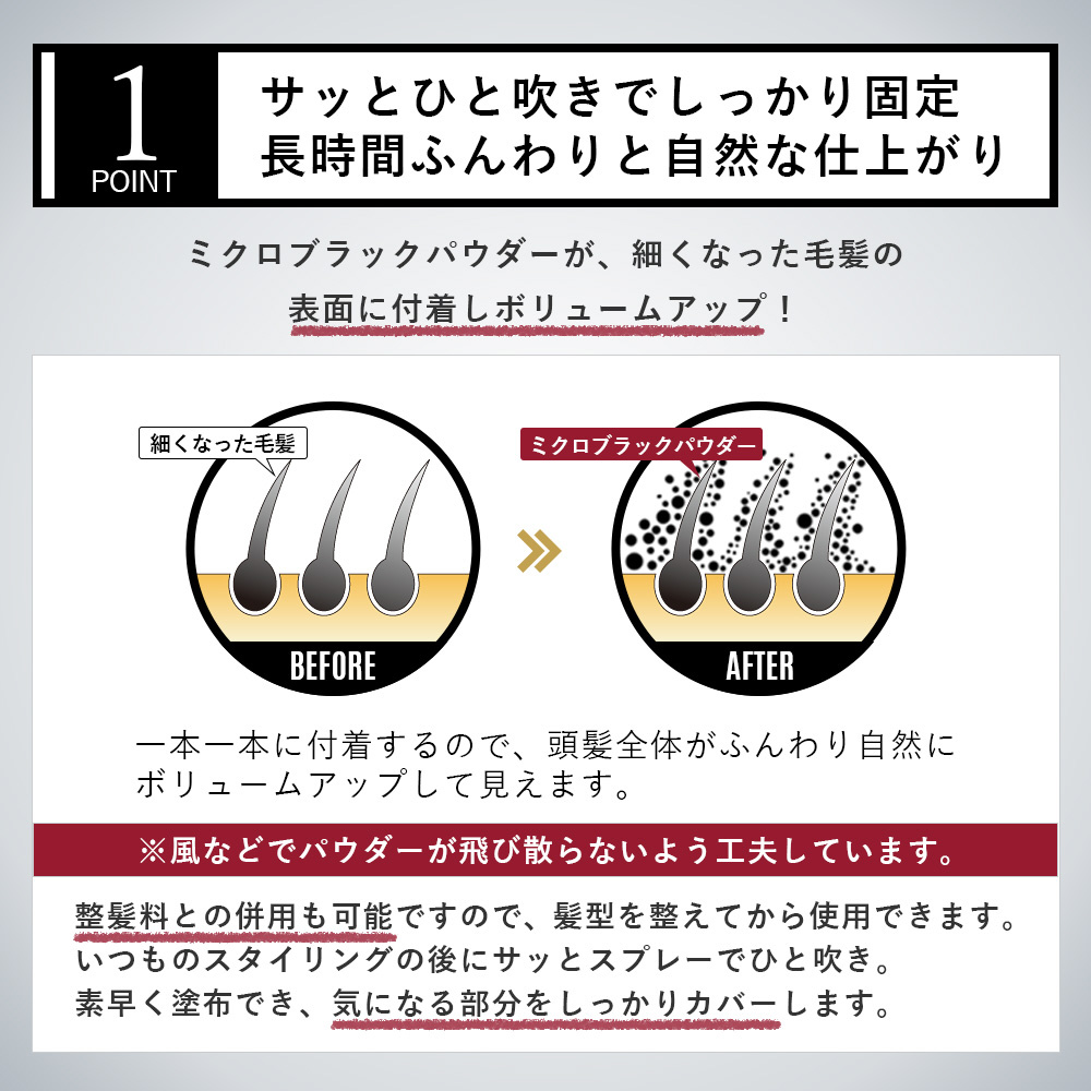 薄毛部分や細くなった髪の毛を自然にをカバーしてくれる、スプレー式ボリュームアップスプレー。