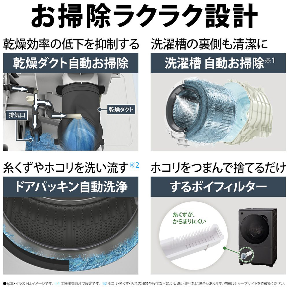 ※シャープ実験による。ダクト内側に液体洗剤を塗布、30分程度放置乾燥し、新品タオル20枚(約1kg)を洗濯標準コースで運転したあとの糸くずノズルによる洗浄効果を確認。