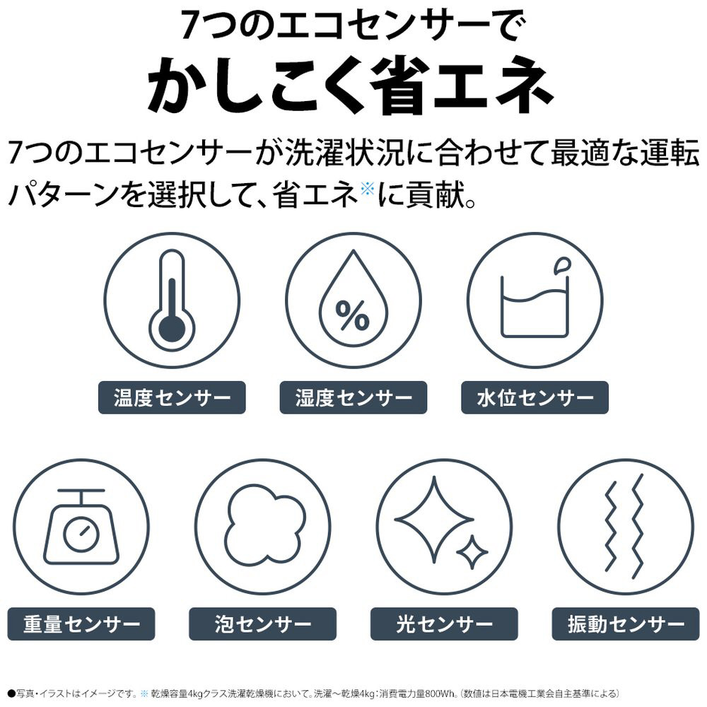 冷却水を使わず、ドラム内の空気を除湿しながら乾燥する「ヒートポンプ乾燥」を搭載。低温風だから衣類にやさしく上質な仕上がりを実現します。