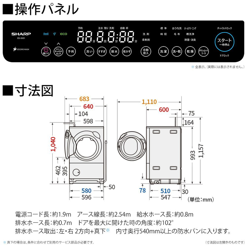 ドラム式洗濯乾燥機 グレイングレー ES-8XS1-HR [洗濯8.0kg /乾燥4.0kg /ヒートポンプ乾燥 /右開き]