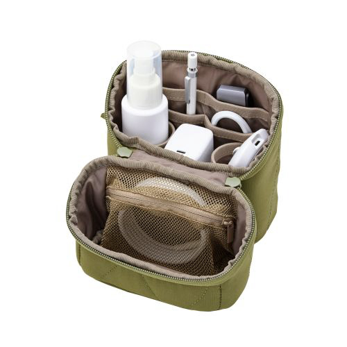 デスク周りの小物やガジェット、筆記用具などのワークツールをまとめてスッキリ収納!デスク上で道具入れとして使える、スタンドタイプのツールポーチです。上品な光沢のあるオニオンステッチのキルティング素材を採用した、大人カジュアルなデザインです。
