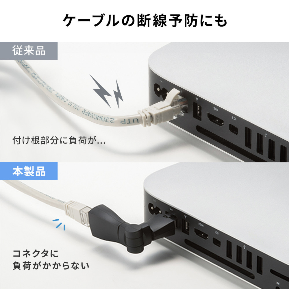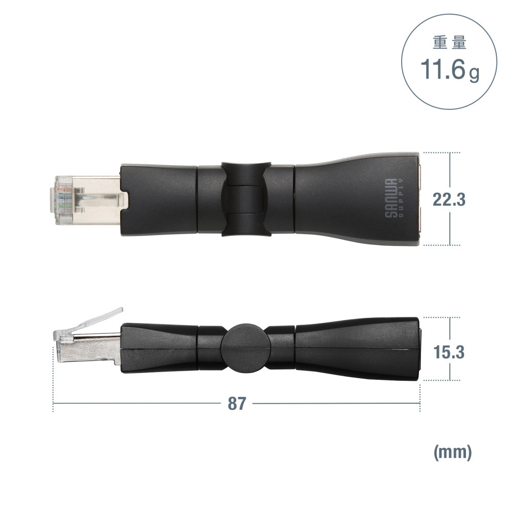 ■RJ-45のオスーメス仕様で、既存のLANケーブルを簡単に延長でき、取り回しもスムーズです。