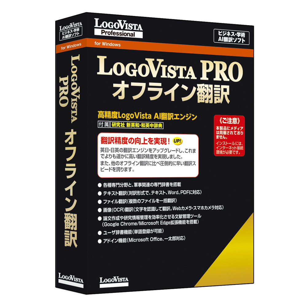 LogoVista PRO オフライン翻訳 は、シンプルで直感的な操作性と、最先端のニューラル翻訳エンジンを搭載した高精度な翻訳ソフトです。